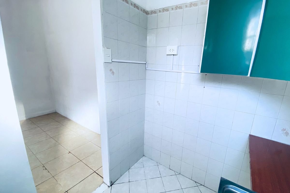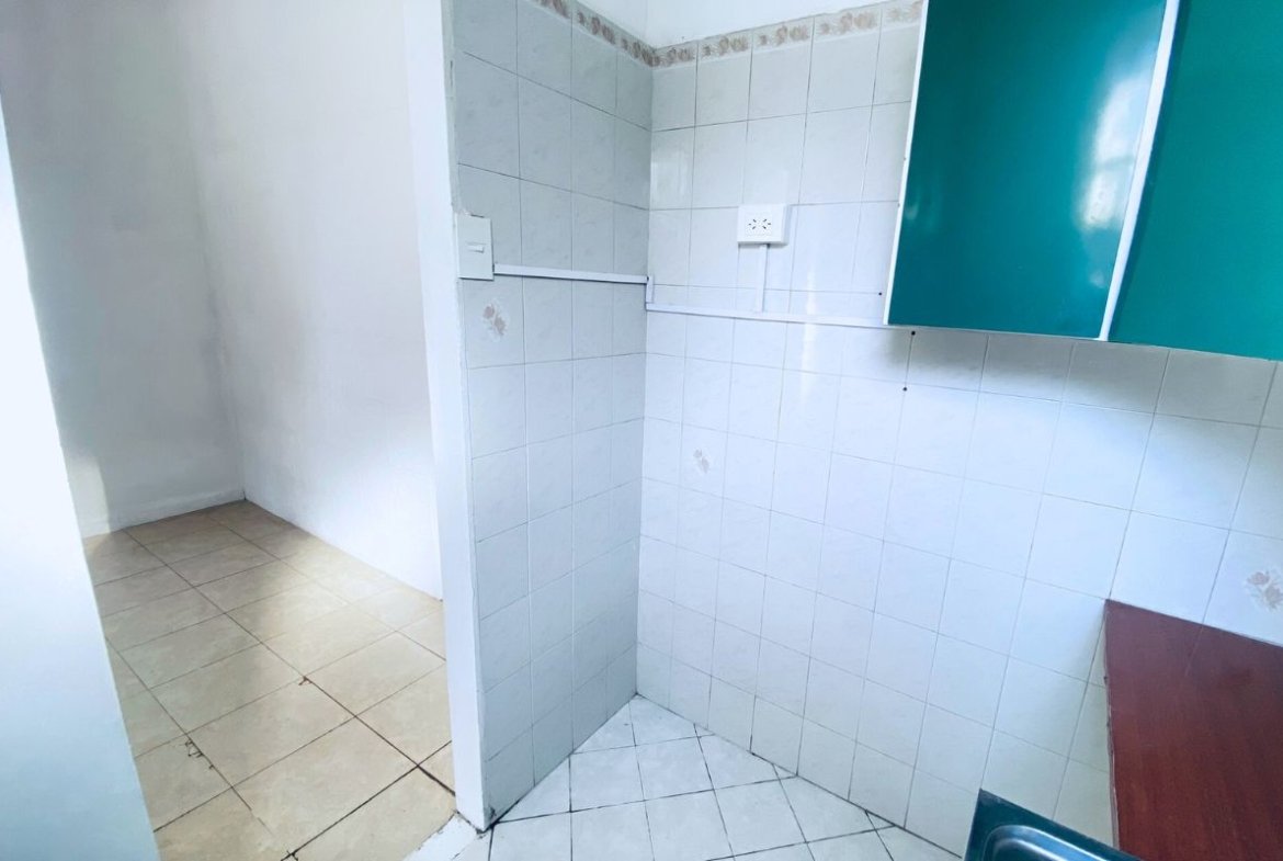 Living-Comedor (3.00 x 2.00 m) con espacio de guardado en altos, baño con ducha, amplio dormitorio (3.00 x 4.00 m) con placard, y cocina con espacio para heladera, conexión para lavarropas y 2 hornallas.