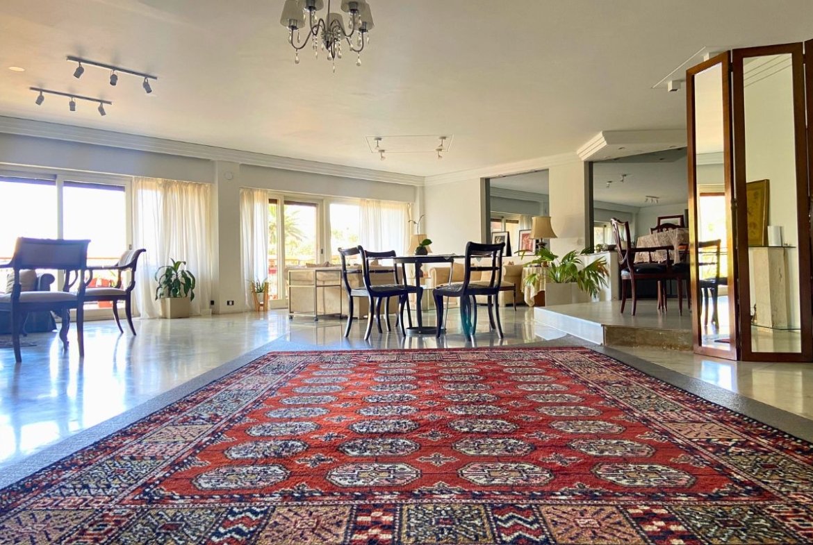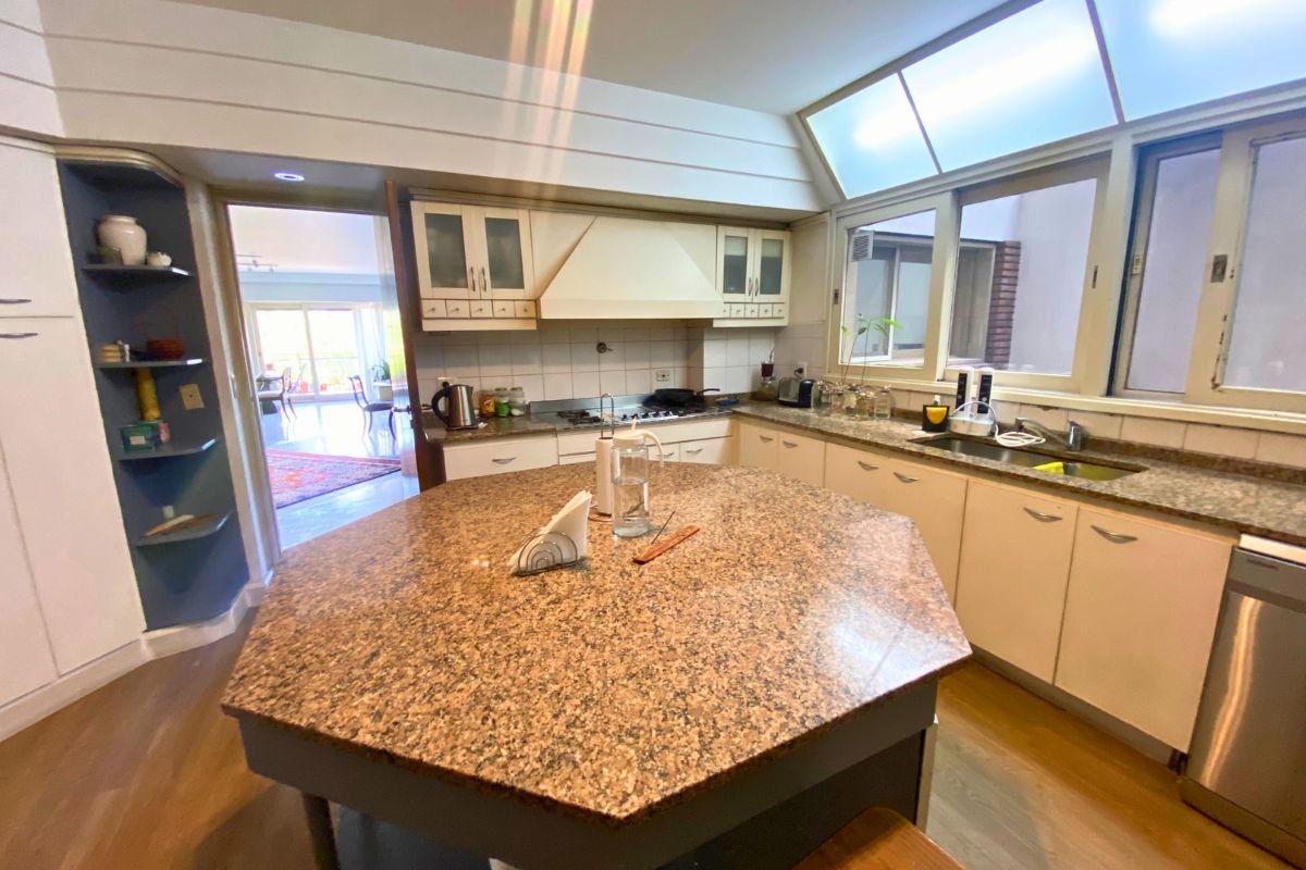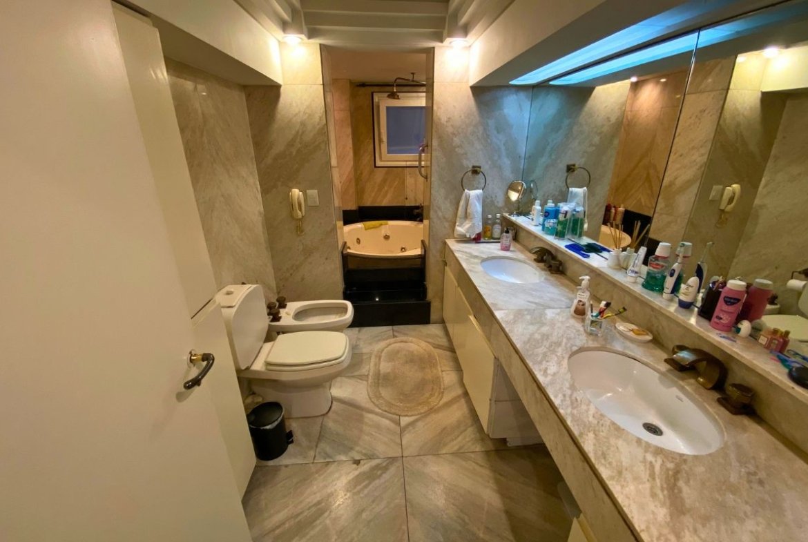 Acceso por palier privado a inmenso Living-Comedor con salida a balcón aterrazado, amplia cocina con mesada en isla y espacios de guardado, comedor de diario independiente, lavadero independiente y doble dependencia de servicio. Continuando con el recorrido, en doble circulación, nos encontramos con un baño toilette de recepción, sala de estar o playroom, escritorio, 3 dormitorios con dimensiones apropiadas y placards, 2 baños completos y dormitorio principal con amplio vestidor y baño en suite con jacuzzi.