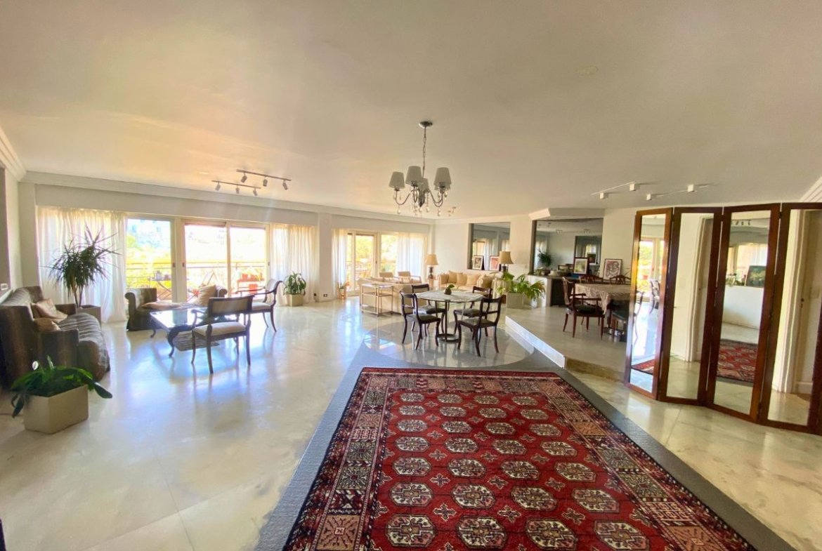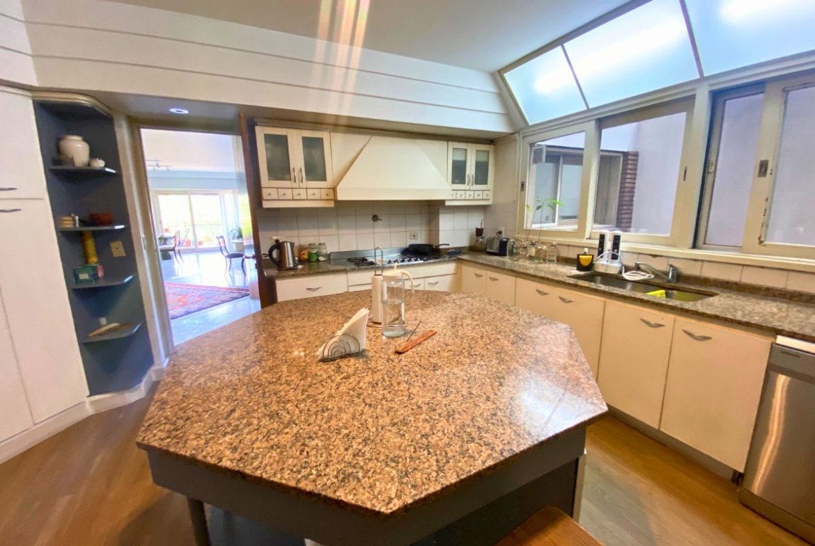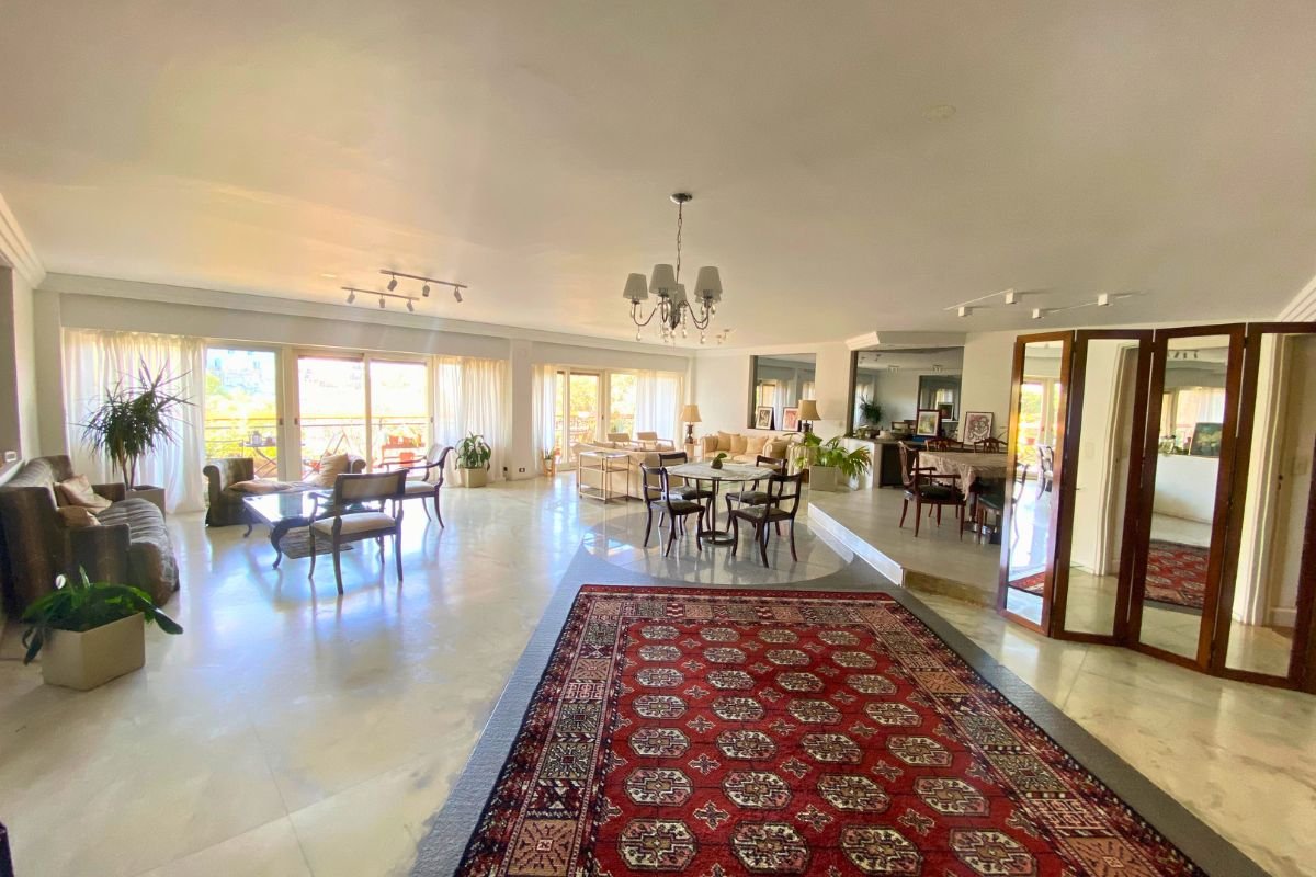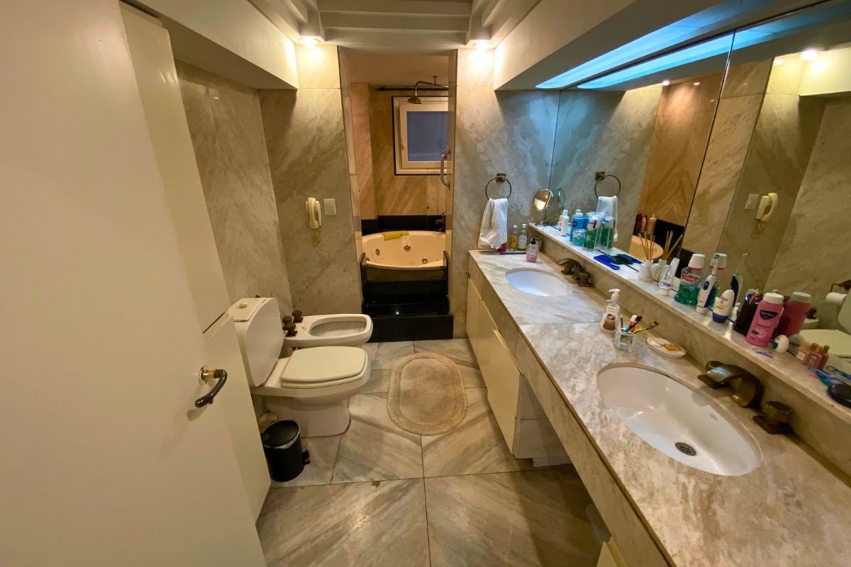 Acceso por palier privado a inmenso Living-Comedor con salida a balcón aterrazado, amplia cocina con mesada en isla y espacios de guardado, comedor de diario independiente, lavadero independiente y doble dependencia de servicio. Continuando con el recorrido, en doble circulación, nos encontramos con un baño toilette de recepción, sala de estar o playroom, escritorio, 3 dormitorios con dimensiones apropiadas y placards, 2 baños completos y dormitorio principal con amplio vestidor y baño en suite con jacuzzi.